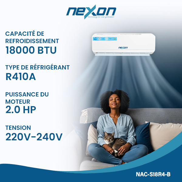 Le NEXON NAC-S18R4-B se distingue par son design moderne, son fonctionnement silencieux, ainsi que son installation facile. L’unité intérieure est compacte et élégante, tandis que l’unité extérieure est robuste et durable. Il est livré avec une garantie de 12 mois, garantissant fiabilité et tranquillité d’esprit.